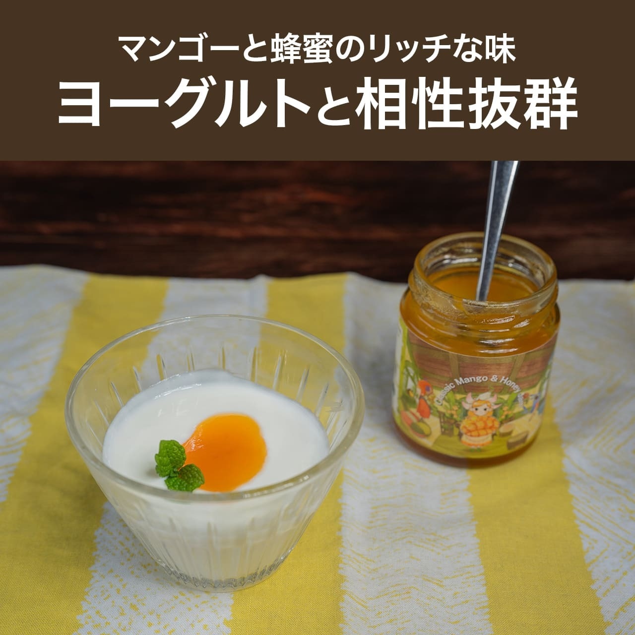 鹿児島県 錦江町(きんこうちょう)でクラシック音楽を聴いて育った完熟マンゴーを使用。マンゴーの芳醇な風味に、たっぷりの蜂蜜が合わさり、リッチな味わい。ぜひ、ヨーグルトと合わせて食べていただきたい!